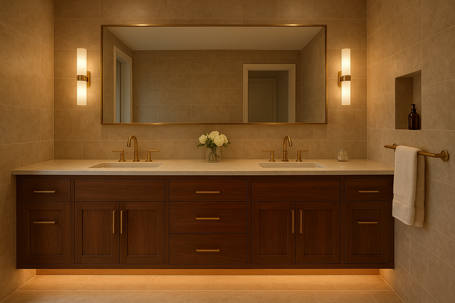 A double vanity instantly elevates both style and functionality. It provides personal space for each user, adds storage, and creates symmetry in the overall layout. Custom-built cabinetry allows you to choose the perfect finish, hardware, and design elements that match the theme of your Bathroom Remodeling project.