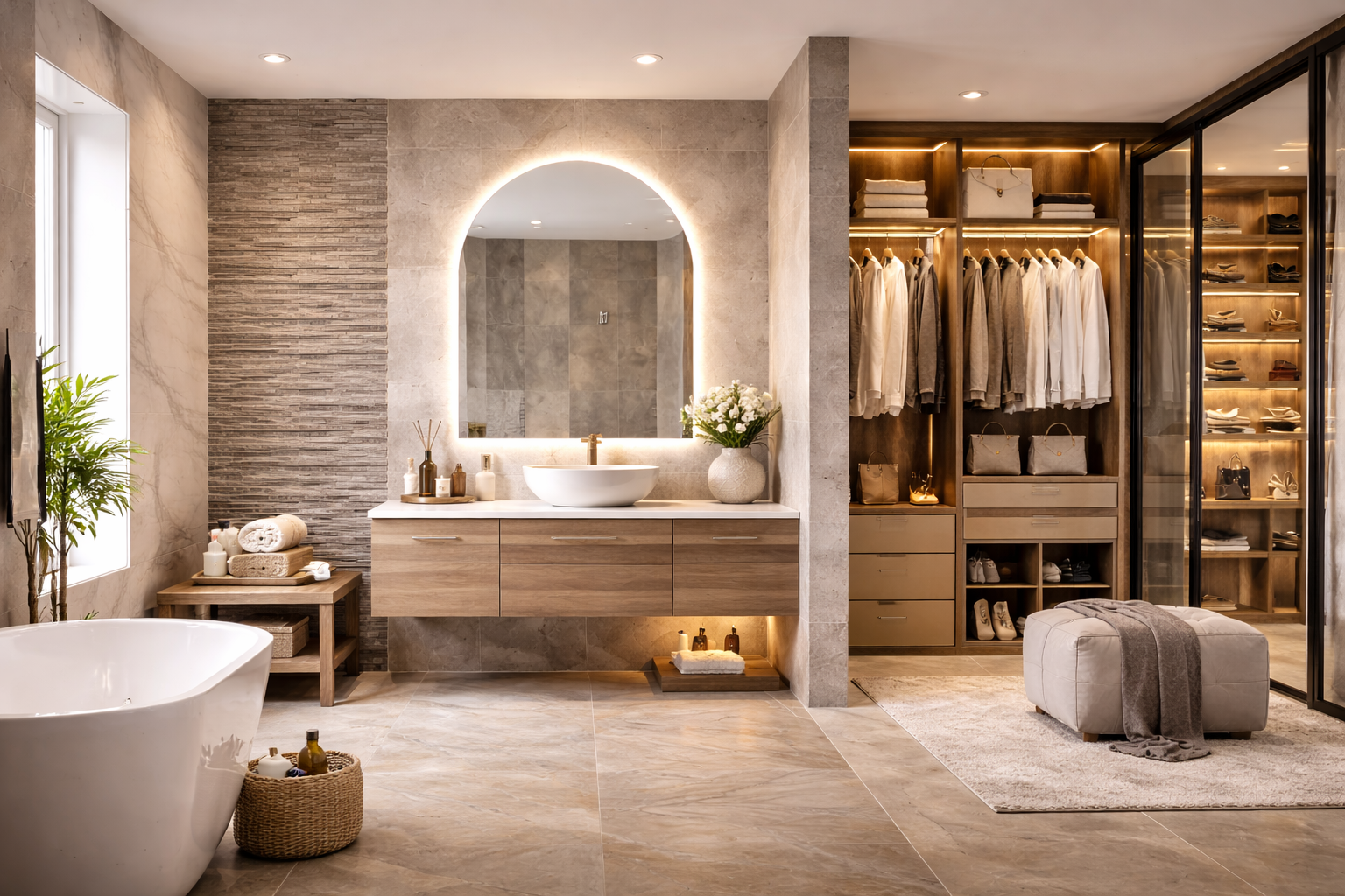 You can mix marble with wood textures, matte with glossy tiles, or stone with glass elements. This creates depth and visual interest without making the space feel cluttered.