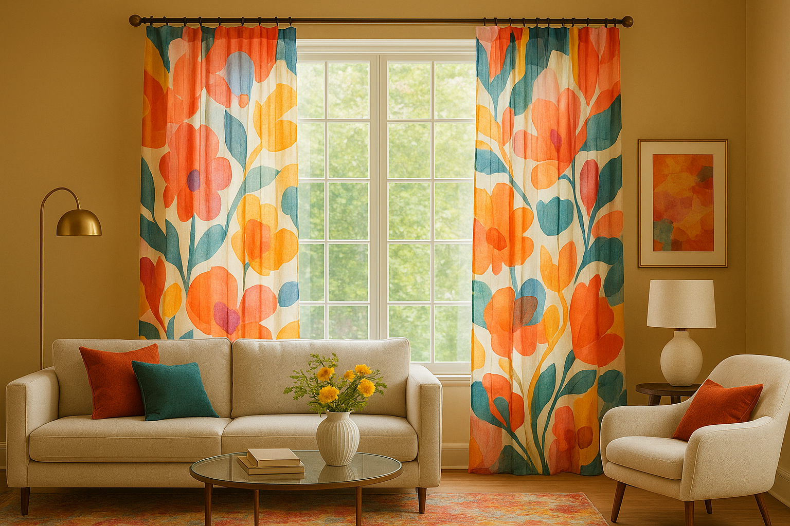 Match your curtain pattern with a few cushions or a throw blanket in the same motif — it ties the room together beautifully, creating harmony between color and design.