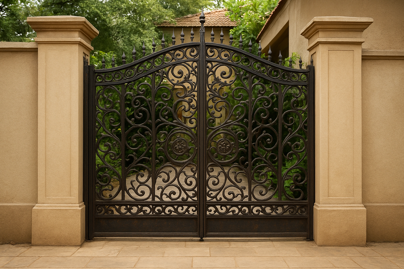 | Iron gate with motifs | Motion sensors | Safety with heritage appeal |