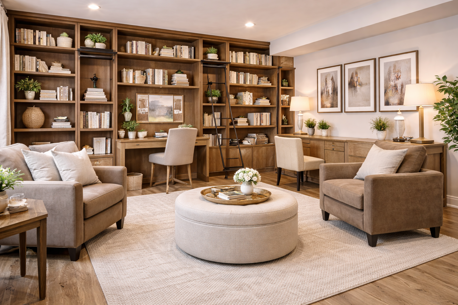 This is one of the most stylish inexpensive basement wall ideas that balances warmth and sophistication.