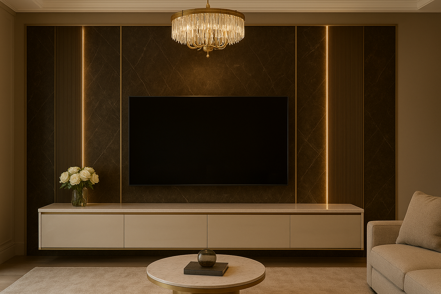 A well-designed TV panel transforms the living room from ordinary to extraordinary. When lighting, materials, technology, and craftsmanship converge, the wall becomes more than a backdrop—it becomes a visual masterpiece.