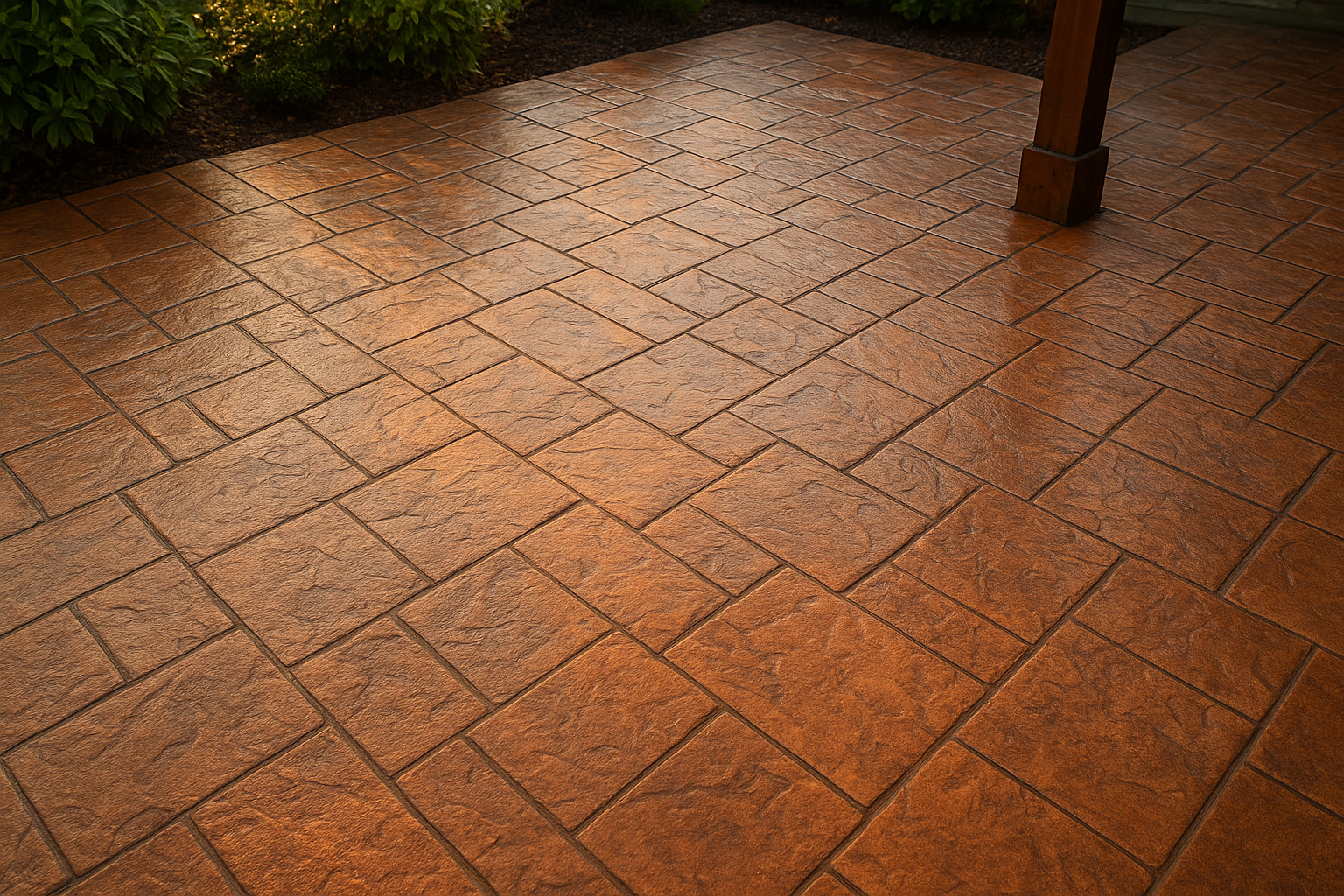 - Stamped or textured concrete patterns that mimic stone or tile.